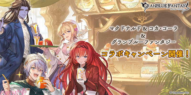 Cygamesは、サイゲームスの子会社である、デザイン制作・ゲーム企画事業を展開するCyDesignationとの共同制作によるソーシャルゲーム『グランブルーファンタジー(グラブル)』において、日本マクドナルドならびに日本コカ・コーラとのコラボレーションキャンペーンを開催します。