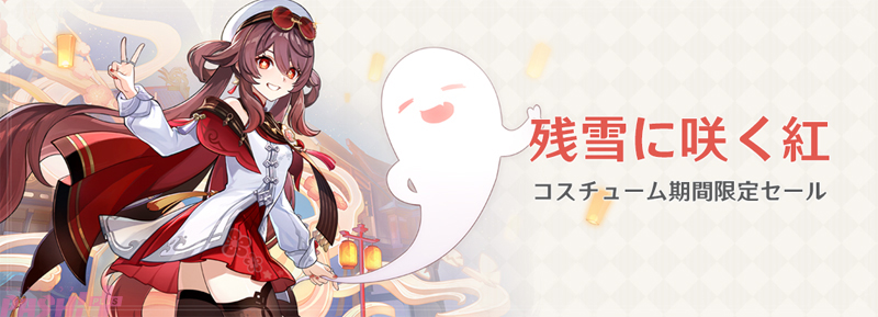 1月1日(水)アップデート後より、胡桃の新コスチューム「残雪に咲く紅」を、「ショップ-キャラ外観」にて常設販売します。また、期間限定セール中は、1,350創世結晶にてコスチュームを購入することができます。