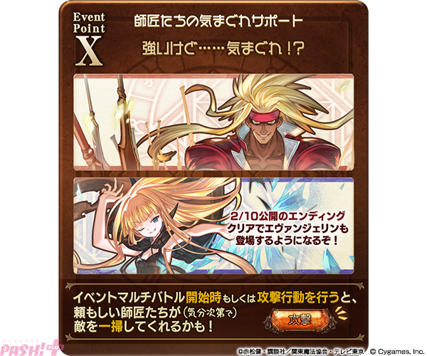 イベントマルチバトル開始時もしくは攻撃行動を行うと、頼もしい師匠たちが敵を一掃してくれる「師匠たちの気まぐれサポート」が発動することがあります。
