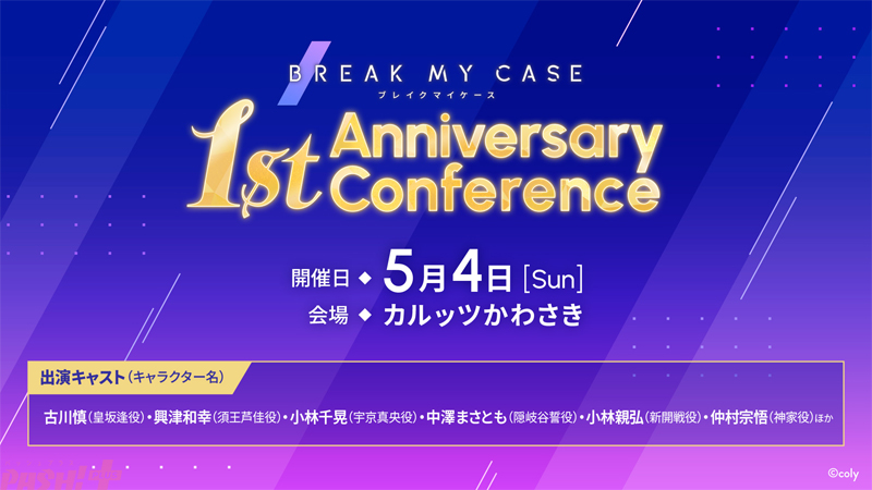 colyは、本日2025年2月6日(木)に、『ブレイクマイケース(ブレマイ)』のアプリリリース1周年を記念した豪華声優陣が出演するキャストイベント「ブレイクマイケース -1st Anniversary Conference-」の開催が決定しました。