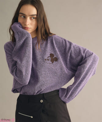 本コレクションは、ヴィンテージライクなデザインにショート丈やブラウンカラーなど、トレンドを取り入れたアイテム全9型をラインアップ。特に注目アイテムは、眠たそうな表情が愛らしい「ミッキーマウス」のアートが目を惹く、ニットプルオーバーとニットブルゾンです。リブ部分を微配色にするなど細部のデザインにもこだわりました。