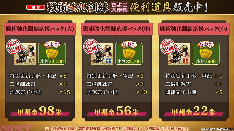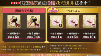 「戦術強化訓練 ~ちよこ大作戦~」の開催期間中、イベントを有利に進められる専用便利道具を期間限定で万屋にて販売します。また、専用便利道具3種類のお得なパックも販売します。