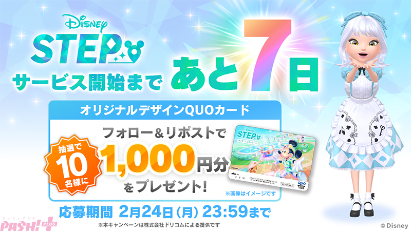 本キャンペーンでは、「Disney STEP(ディズニー ステップ)公式」をフォローし、キャンペーン対象のポストをリポストした方の中から、オリジナルデザインのQUOカード1,000円分を抽選で毎日10名、合計で70名にプレゼント!