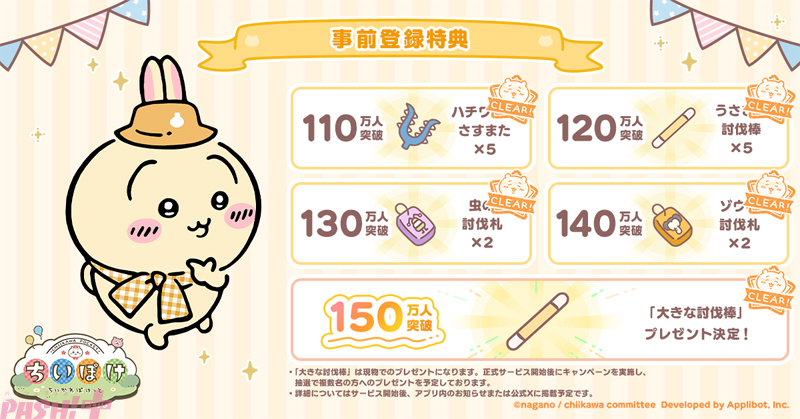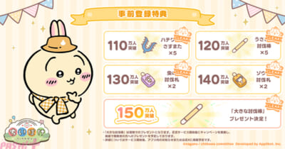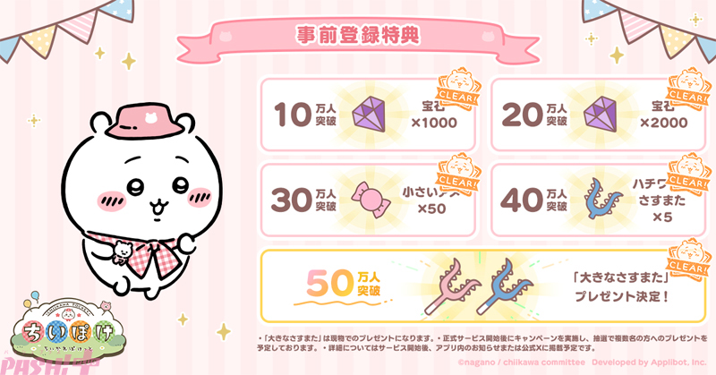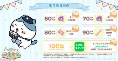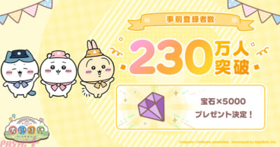 アプリボットが企画・制作・開発・運営を行うスマホアプリ『ちいかわぽけっと(ちいぽけ)』の事前ダウンロードが開始。また、事前登録者数230万人を達成し、追加特典の配布が決定しました。