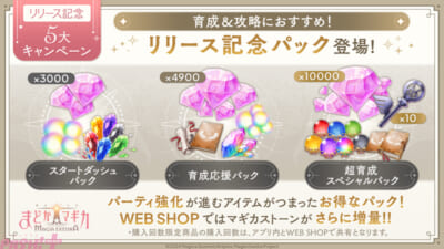 先行リリース開始の2025年3月26日(水)より、公式WEB SHOPが開設されました。マギカストーンやパック商品を購入可能で、WEB SHOPで購入することでアプリ内より多くのマギカストーンが手に入ります。