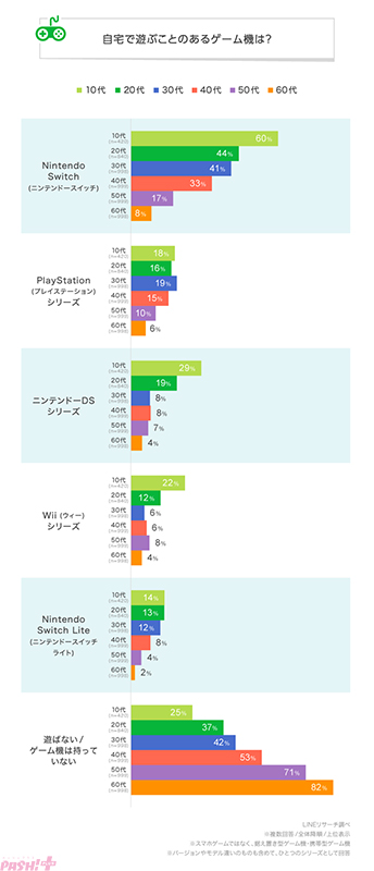 LINEヤフーは、同社が保有する700万人以上の国内最大級のアクティブな調査パネルを基盤とした、スマートフォン専用のリサーチプラットフォーム「LINEリサーチ」を運営しています。全国の10~60代の男女を対象に、自宅で遊ぶことのあるゲーム機とそのゲーム機で普段遊んでいるゲームのジャンルについて調査を実施。その結果が発表されました。