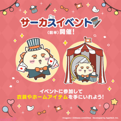 【ちいぽけ】サーカステーマなシーサーの「衣装」や「ホームアイテム」が手に入る! アプリ『ちいかわぽけっと』サーカスイベント&プレゼントキャンペーンが開催