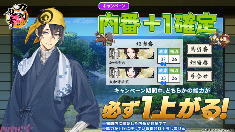 期間中、内番終了後にどちらかの能力が必ず1上がります。