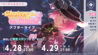 イベント終了後には「バーチャルライブ」でのアフターライブとして、「Choices for the future アフターライブ」を開催します。