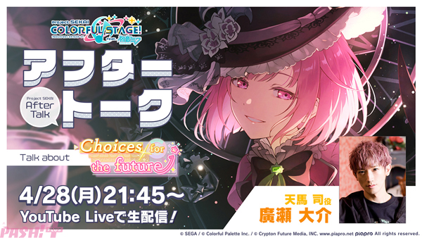 「プロセカアフタートーク Choices for the future編」を2025年4月28日(月)21:45よりYouTube Liveにて生配信します。「プロセカアフタートーク」は、ゲーム内イベント終了後にキャストとイベントストーリーを振り返ったり、アフターライブを楽しんだりする番組です。