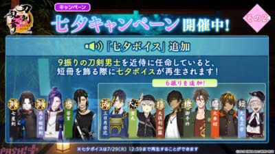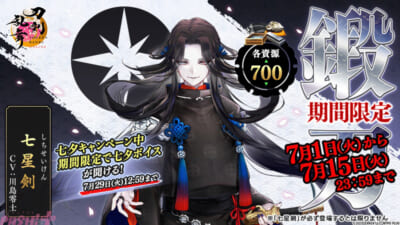 「期間限定鍛刀キャンペーン」に「七星剣(CV:川島零士)」登場