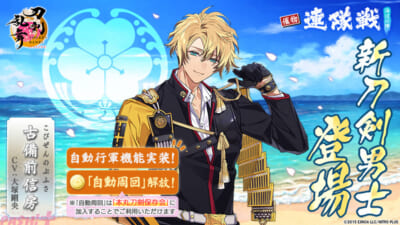 EXNOAは、同社が開発・運営、株式会社ニトロプラスが世界観・シナリオ・キャラクターデザインを担当している、刀剣育成シミュレーション『刀剣乱舞ONLINE』にて、2025年7月1日(火)メンテナンス後より新刀剣男士「古備前信房(cv. 大塚剛央)」を入手できるイベント「連隊戦 ~海辺の陣~」を開催中です。