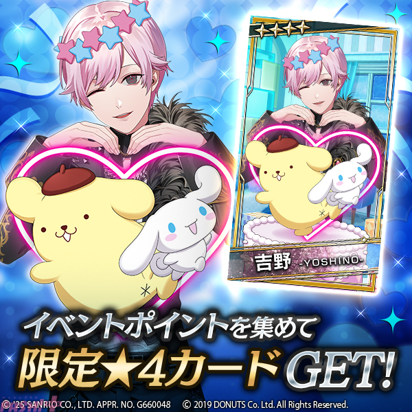 イベントを進めることで報酬としてサンリオキャラクターズのコラボ称号、メモリーボードで使用できるデコアイテム、さらにポムポムプリンとシナモロールと一緒に描かれた「★4吉野」のカードが獲得できます。