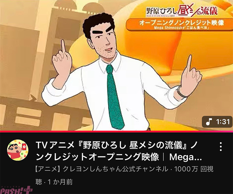 『野原ひろし 昼メシの流儀』は、『クレヨンしんちゃん』の公式スピンオフとして、しんちゃんの父・野原ひろし(35歳)の昼メシにまつわる出来事を塚原洋一が描いた同名漫画を原作とするアニメ作品です。本作はPVが2025年10月11日に公開され、Xやニコニコ動画等通じて話題が広がり、オープニング主題歌映像はYouTubeで再生回数1000万回を突破。現在の動画視聴数は、1025万回を超え、コメントも11,926件の投稿が行われています。