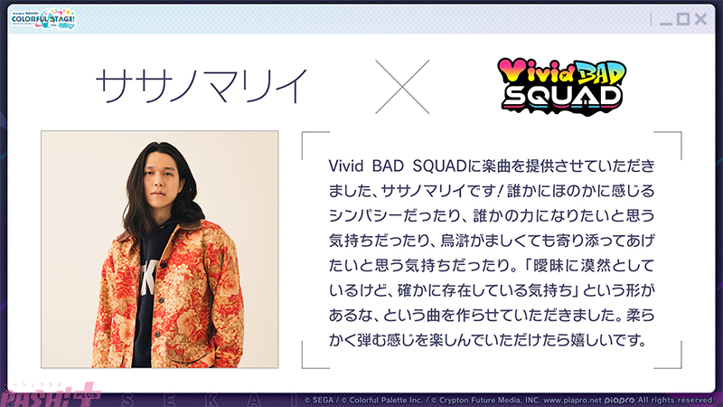 『プロジェクトセカイ』書き下ろし楽曲提供クリエイターとして、LonePiさん、ササノマリイさんが参加することが決定しました。LonePiさんには「25時、ナイトコードで。」の書き下ろし楽曲を、ササノマリイさんには「Vivid BAD SQUAD」の書き下ろし楽曲を提供いただきます。今後、リズムゲーム楽曲として追加予定です。詳細情報の公開をお楽しみに!