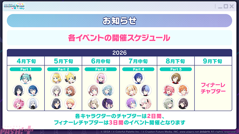 次回のワールドリンクイベントでは、ユニットごとではなくシャッフルメンバーでの開催となるほか、各Partごとに書き下ろし楽曲が登場します。また、ワールドリンクイベントの開催に合わせて新登場するメンバーは、ヘアスタイル付きの「期間限定メンバー」を予定しております。