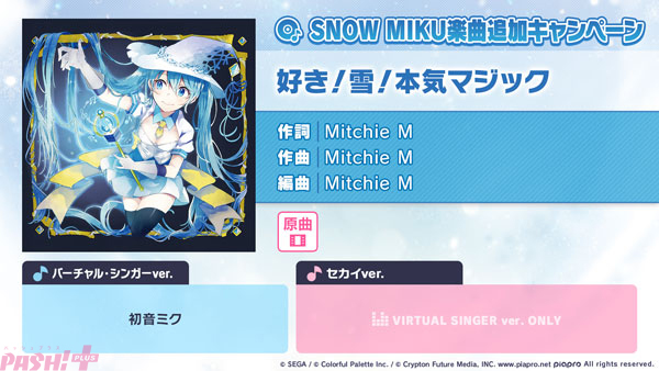 セガとColorful Paletteは、iOS/Android向けリズム&アドベンチャー『プロジェクトセカイ カラフルステージ! feat. 初音ミク(プロジェクトセカイ)』について、2026年1月31日(土)より、「SNOW MIKU 楽曲追加キャンペーン」として新たに「好き!雪!本気マジック」(作詞・作曲:Mitchie M)をリズムゲーム楽曲に追加しました。また、同日よりゲーム内イベント「粉砕せよ!アンヴァレンタインの復讐」、「A sweet afternoonガチャ」を開催中です。