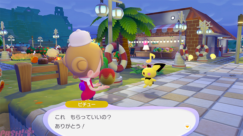 MAHINAさんがポケモンたちと協力し、街をつくっていくシーンから始まります。ピチューが街灯にでんきを点けてくれる愛らしい姿に続き、ゲームチャットで「街づくりの大先輩」指原さんが登場。