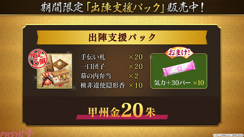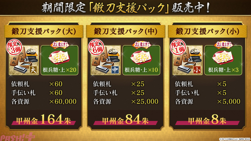 「鍛刀支援パック」「出陣支援パック」「御札セット」販売