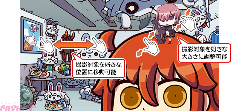 撮影対象を好きな位置にスワイプで移動させたり、ピンチイン・アウトすることで好きなサイズに調整することもできます。