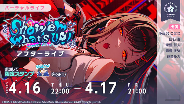 イベント終了後には「バーチャルライブ」でのアフターライブとして、「Show ‘em what’s up! アフターライブ」を開催します。