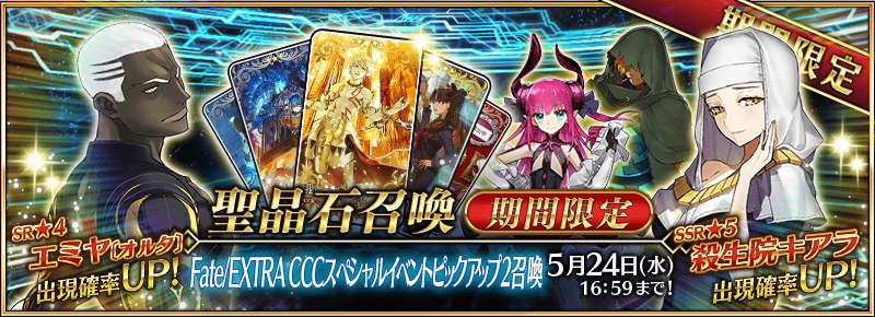 iOS/Android用アプリ『Fate/Grand Order(FGO)』で、5月24日16:59まで“Fate/EXTRA CCCスペシャルイベントピックアップ2召喚”が開催されている。