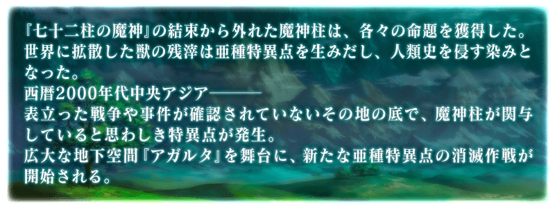 iOS/Android用アプリ『Fate/Grand Order(FGO)』の公式サイトで、6月下旬~7月上旬に配信予定の“亜種特異点II 伝承地底世界 アガルタ アガルタの女”に関する情報が一部公開された。