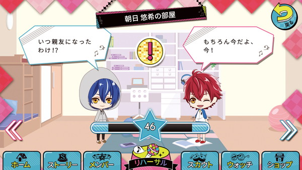 アニドルとしてリハーサルを頑張るみんなを、タップでサポートしよう。