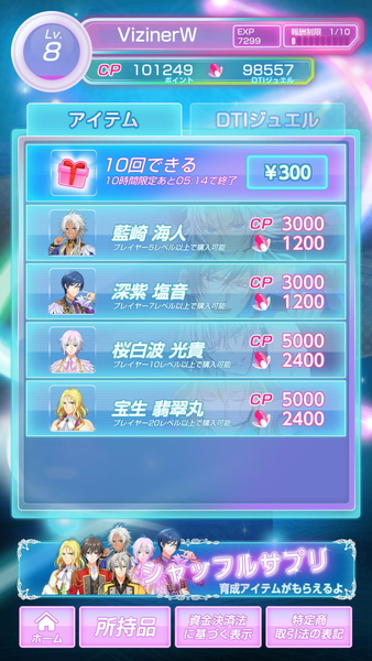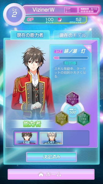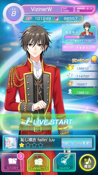 毎日のログイン、リズムゲームプレイ、アイテムによってキャラクターの経験値が上昇。キャラクターを育成することでライブのスコアアップ&ストーリー開放を目指そう!