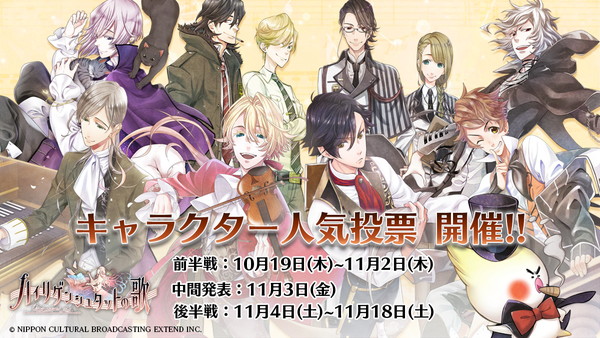 女性向けコンテンツブランド‟eXtend”の乙女ゲーム『ハイリゲンシュタットの歌』のキャラクター人気投票が、本日10月19日より開始となった。