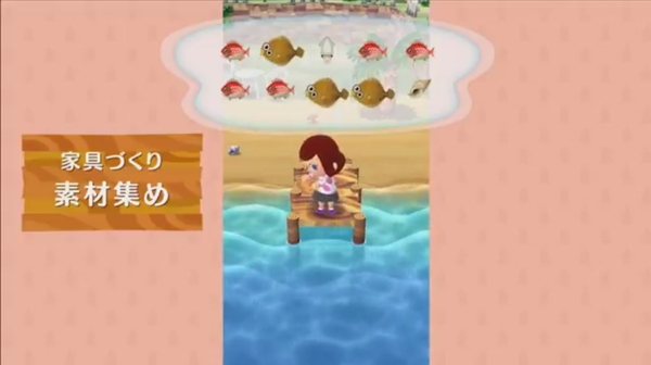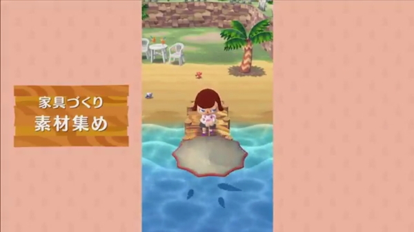 素材集めに各エリアをまわることになるが、そこには蝶や蝉といった虫、サンゴ、魚などさまざまな生き物が。ついつい散策をしてみたくなる。鉱石なども採掘することができ、これらのアイテムはどうぶつの“おねがい”に使用できるほか、売ることでゲーム内通貨“ベル”に変えることができる。
