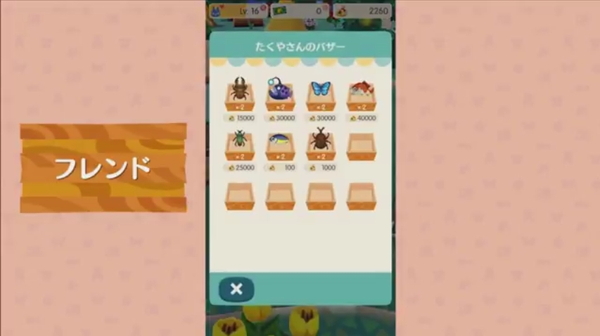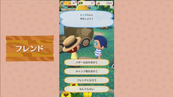 もちろんフレンド機能も。キャンプ場にはほかの管理人が遊びに来たり、こちらから遊びに行ったりすることも可能だ。フレンドになることで、いつでもキャンプ場に遊びに行けるようになる。また、バザーを開くこともできるそう。