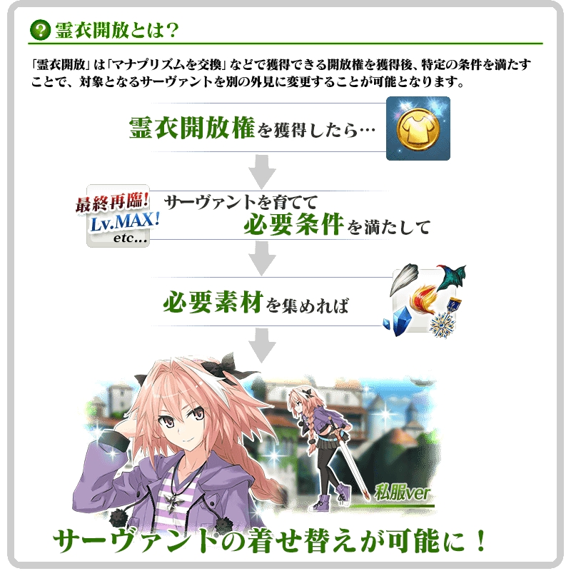 アストルフォの霊衣開放権がダ・ヴィンチ工房の“マナプリズムを交換”に追加