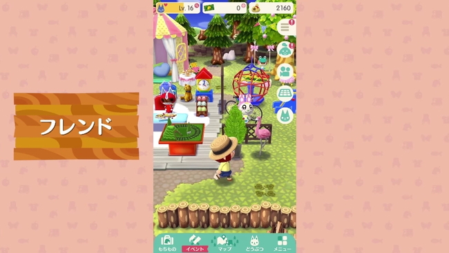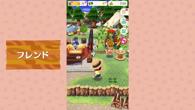 あなたのキャンプ場の周囲には、キャンパーであるどうぶつたちがいます。どうぶつたちに話しかけたりお願いを聞いたり、どうぶつたちの好みの家具を設置したりすることで、“なかよし度”がアップ! なかよくなったどうぶつは、プレイヤーのキャンプ場に遊びにきてくれるようになります♪