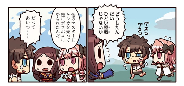 『ますますマンガで分かる!FGO』ボロボロの姿で現れた男主人公。他のマスターにケンカを売ったようだが…?