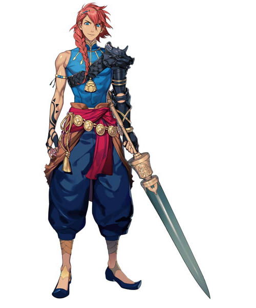 砂漠の帝国レジェンドラの第9皇子。類い希なカリスマ性をもつが、少々自信家でワガママな面もある。右腕にかけられた魔物の呪いを解くべく、ロードオブグローリーに参加する。