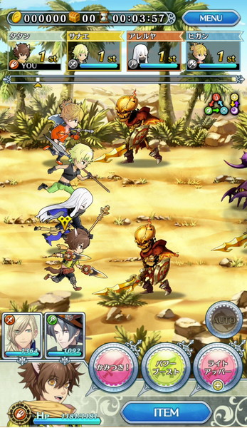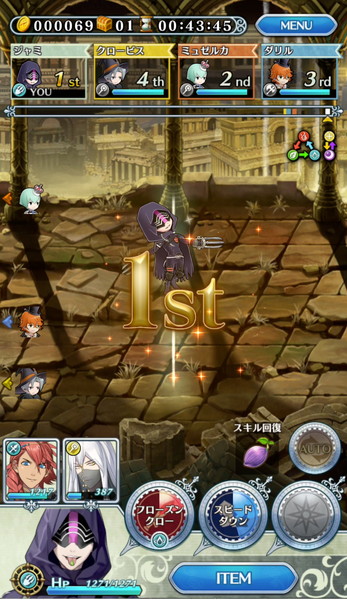 最大3人のスレイヤーでチームを組んでレースバトル。ライバルキャラクターたちよりも早く魔物を倒し、ゴールまでたどり着こう。各キャラが持つスキルを上手く使いながら、ライバルを抜いて1位になれるようにサポート!