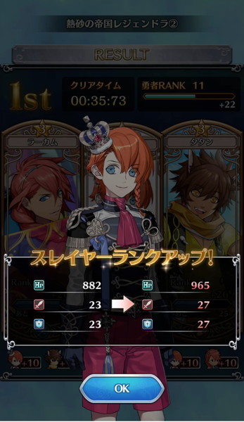 レースに出たスレイヤーたちはオトメ勇者との親密度が高まる。親密度が貯まるとランクアップ! 仲を深めることで特別なエピソードを見ることができる。