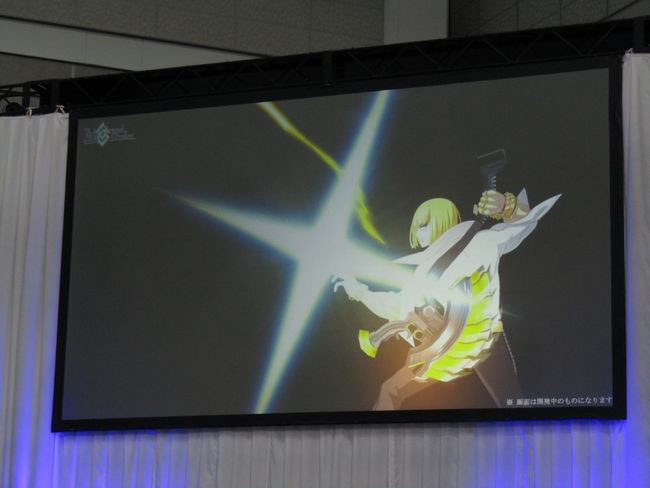 ステージには『FGO』クリエイティブディレクターの塩川洋介さん、『FGO』マーケティングディレクターの石倉正啓さん、アニプレックス宣伝担当の金沢利幸さんが登壇しました。