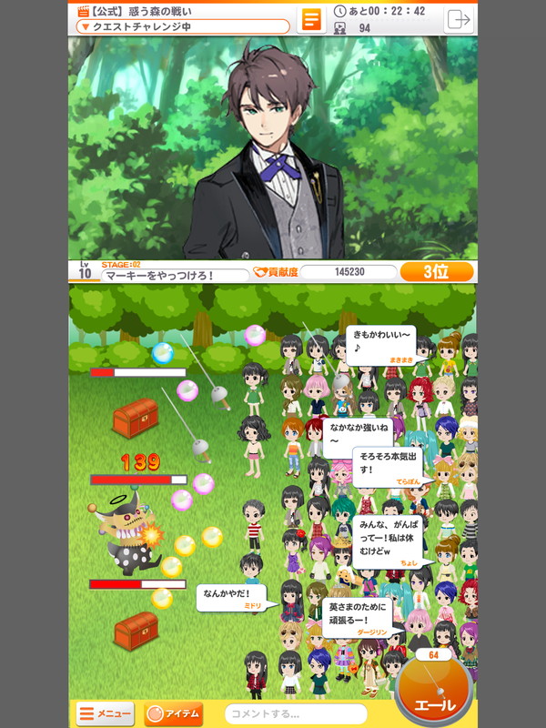 公式配信、キャスト配信がない時間でも、自身のアバターレベルを上げるためのクエストモードが常時設定されている。クエストを進めるにつれ経験値がたまり、レベルが上がっていくというRPG要素もあるとのこと。