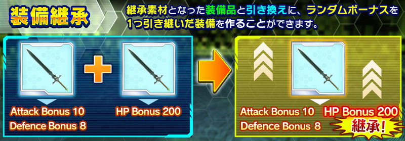 ▼【装備継承】生産した武具のランダムステータス一つを、別の武具に継承できる新機能が登場。ステータスを厳選して武具をさらに強化できるようになる。