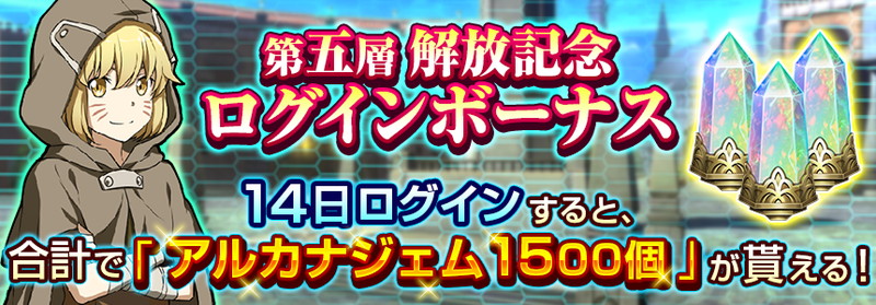 メインクエスト第五層解放を記念したログボも開催中