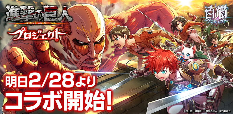 コロプラのアクションRPG『白猫プロジェクト』で『進撃の巨人』とのコラボが本日2月28日~3月20日の期間開催される。
