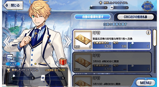 ※交換後の概念礼装はプレゼントボックスに送られ、“CBC2018特別招待状”は消滅する。