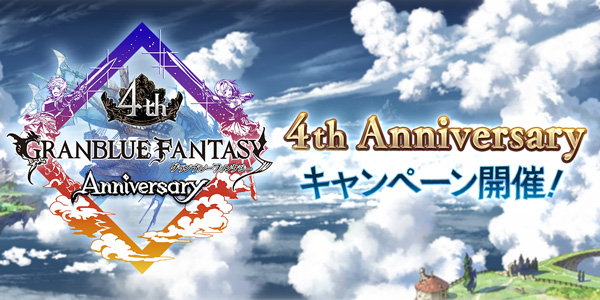 iOS/Android用アプリ『グランブルーファンタジー』が、2018年3月10日をもってサービス開始から4周年を迎える。これを記念して、3月10日より4th Anniversaryキャンペーンが開催されることが発表になった。