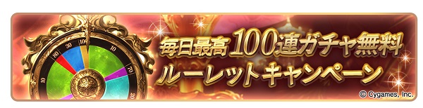 毎日最高100連ガチャ無料ルーレットキャンペーン
