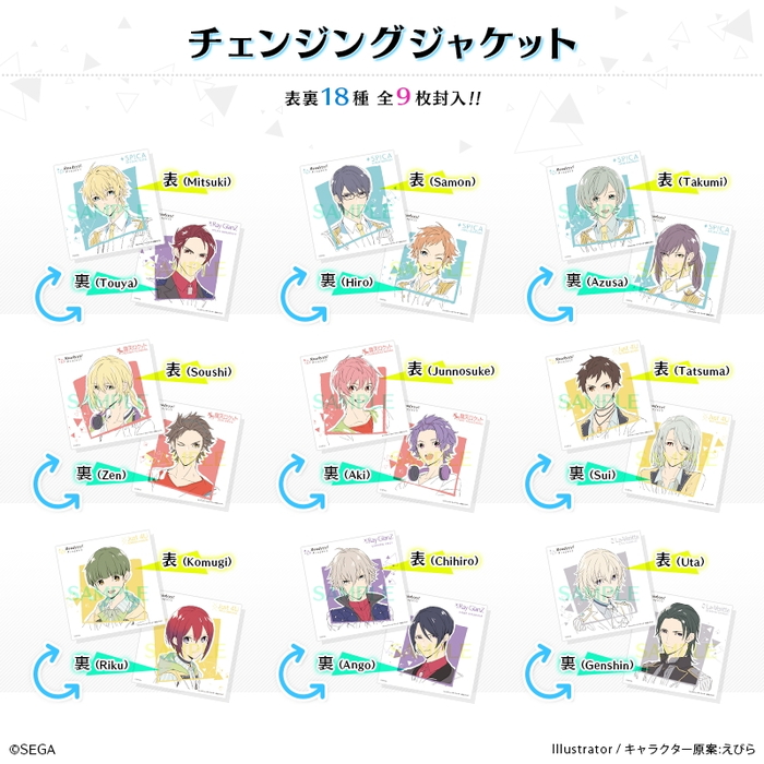 ・チェンジングジャケット9枚封入(18キャラが表裏にプリントされた仕様)