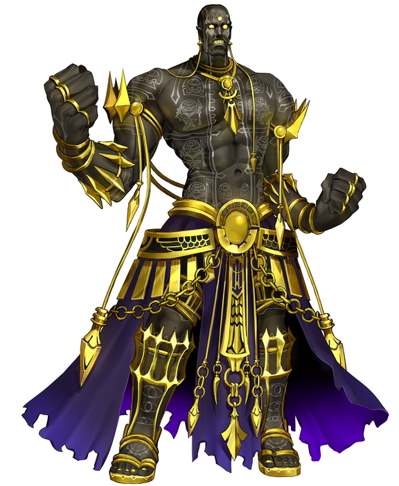 アケメネス朝ペルシャ最後の王。身の丈3mを超える巨躯を刺青と黄金で彩った黒き巨人。“狂化”により人間性はほとんど失われているが、戦士としての闘志、王としての威厳は失われていない。