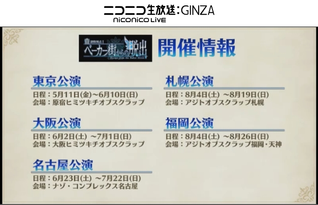 リアル脱出ゲームが発表された。全国5都市で5月より開催される。