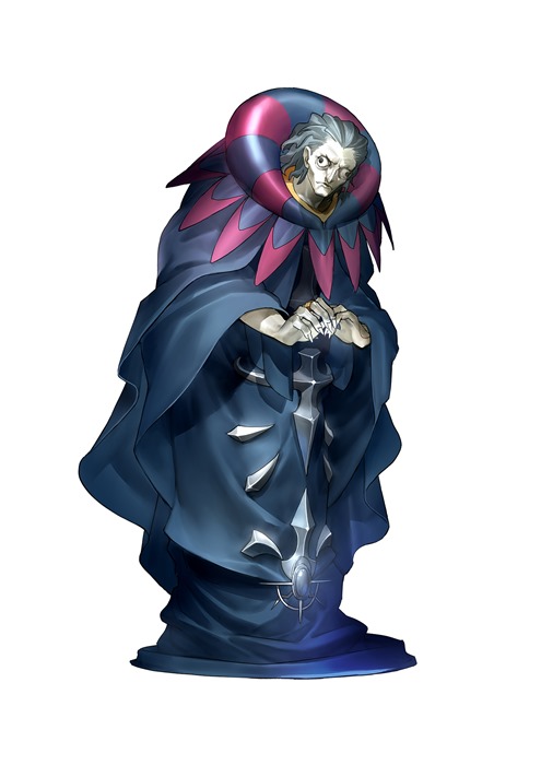 “青髭”のモデルとなった残虐な快楽殺人鬼。ローブに身を包んだ異形の怪人。魔導書“湮城教本(プレラーティーズ・スペルブック)”によって召喚された海魔を使役して戦う。